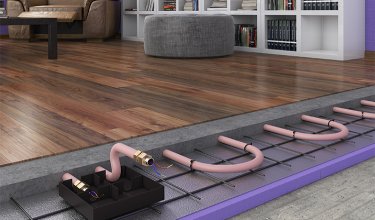 Весь пол становится радиатором. Для отопления достаточно небольшой температуры (+28 °C).